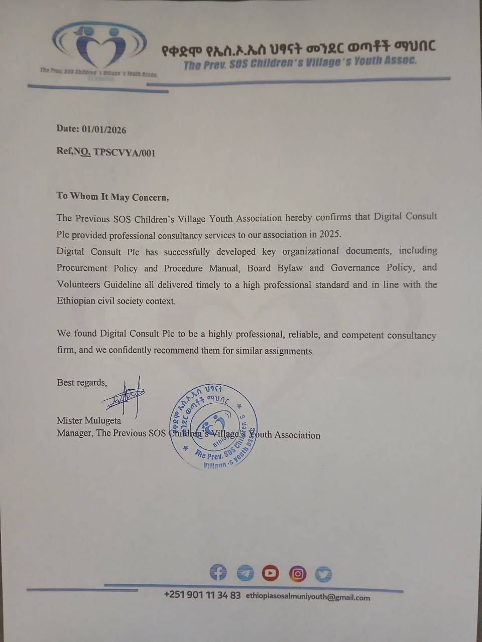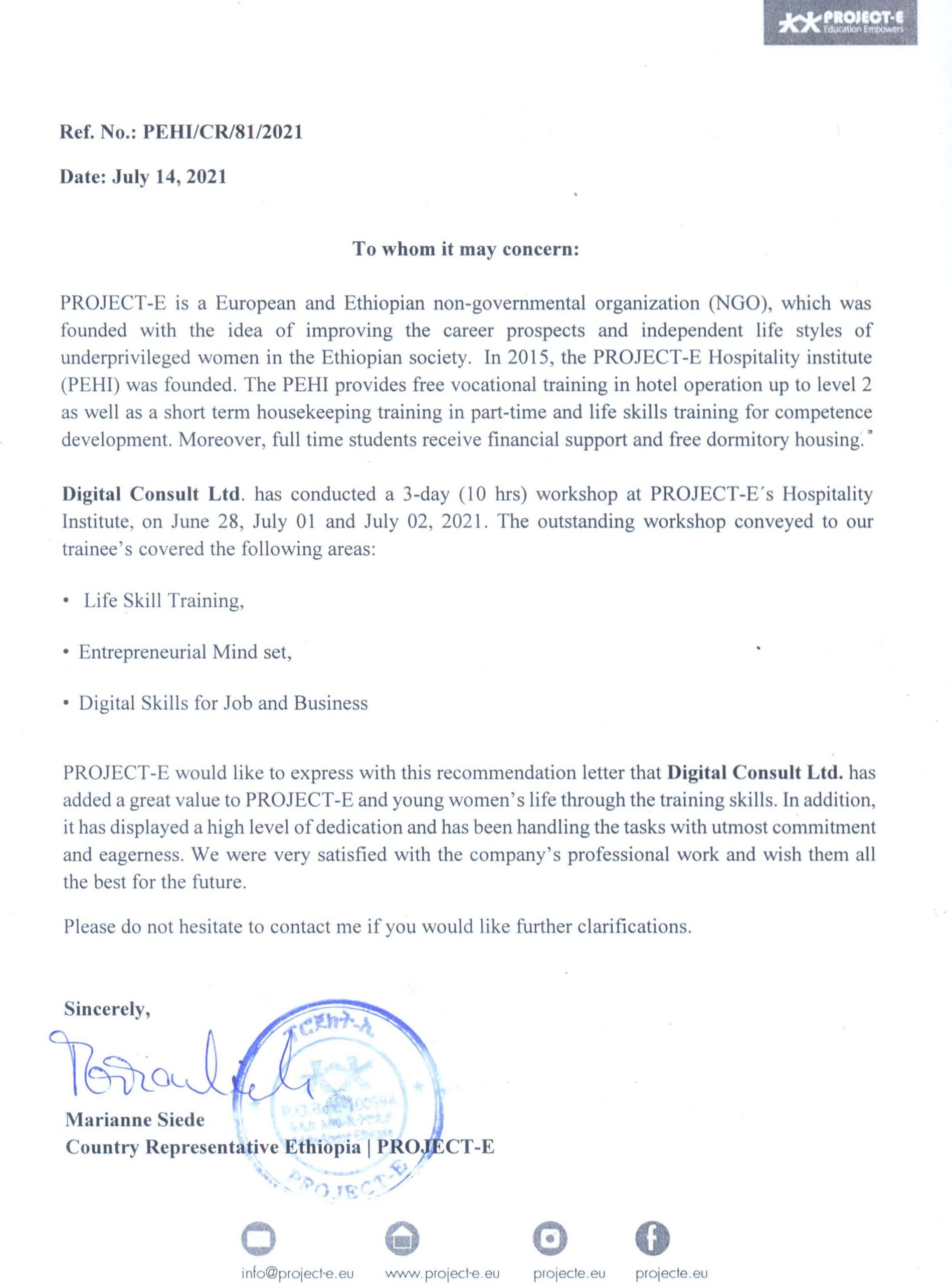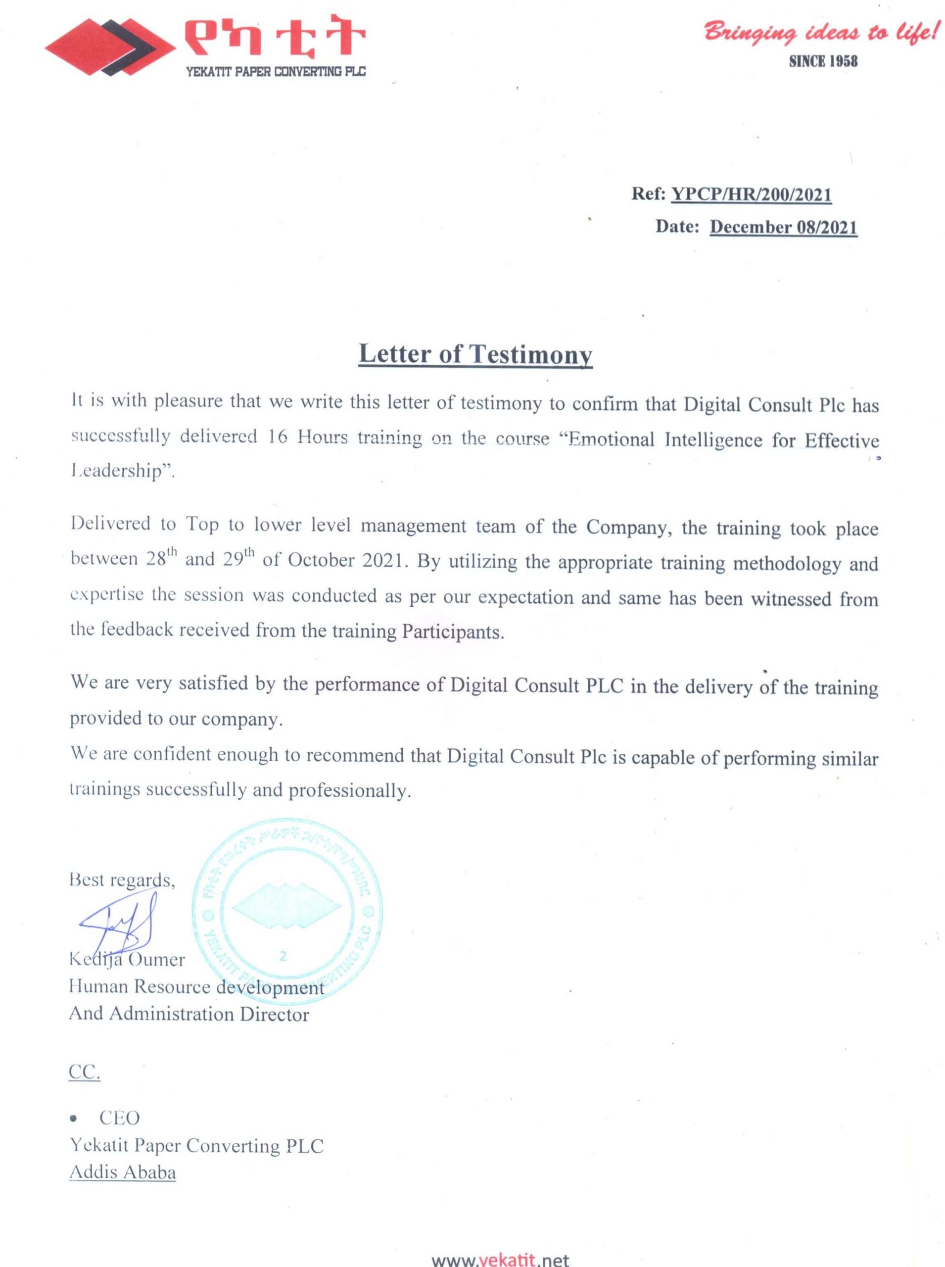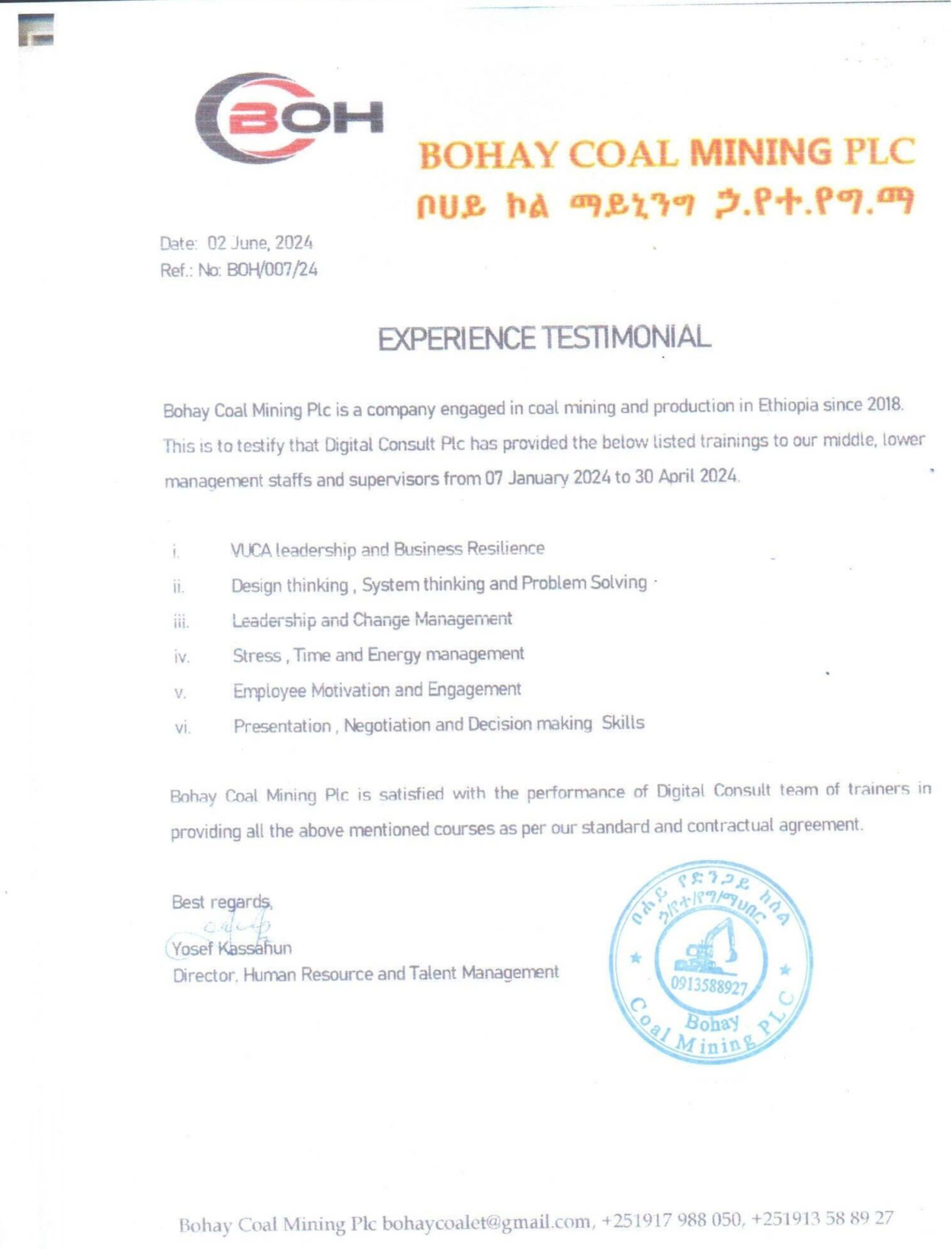 Yes, Our Company provides training and Consultancy services in Addis Ababa and all regions across Ethiopia.
